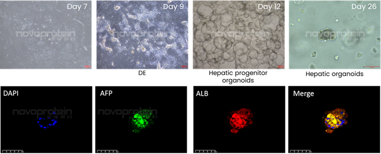 Figure 3. iPSC-derived liver organoids were cultured with Novoprotein cytokines and growth factors as specified in the table.