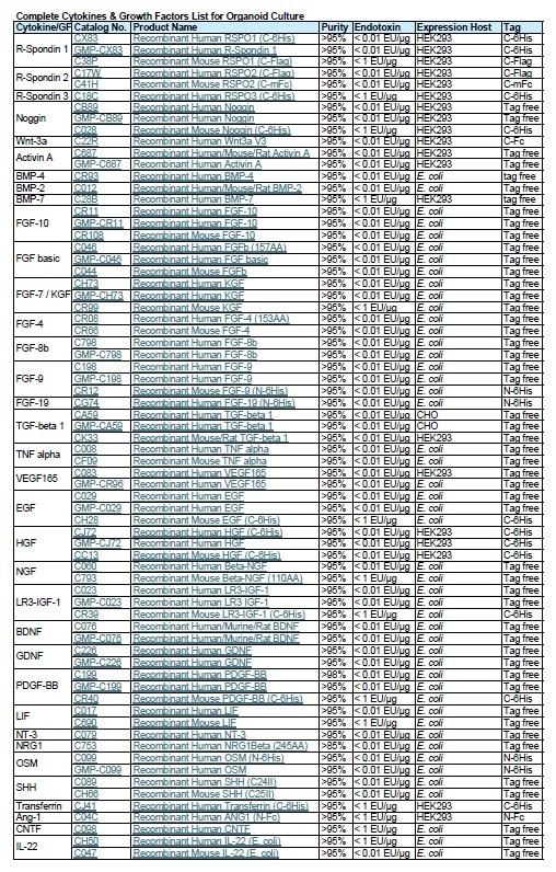 Growth Factors and Cytokines for Organoid and 3D Culture Systems