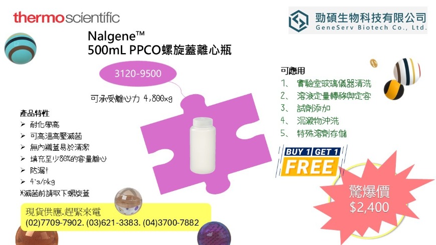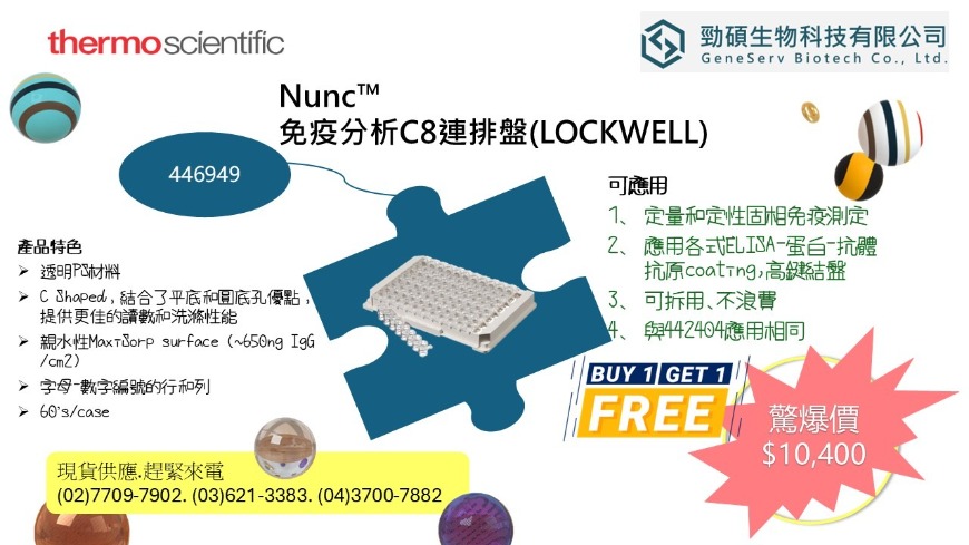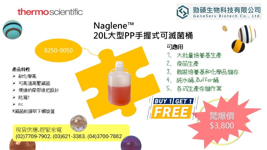 勁碩生物科技有限公司 GeneServ Biotech Co., Ltd. 台灣總代理.PakGent.Novoprotein.GA.ThermoFisher.Nunc.Nalgene.